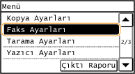 Faks ile ilgili tüm ayarlar, kısa açıklamalarla birlikte listelenir. Varsayılan ayarlar kama ile işaretlenmiştir (