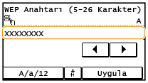 Sayı tuşlarını kullanarak ağ anahtarını girin ve <Uygula> öğesine dokunun.