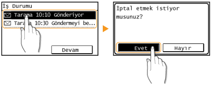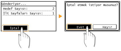 tuşuna bastıktan hemen sonra belge gönderme işlemini iptal etmek isterseniz, ekranda <İptal> öğesine dokunun veya