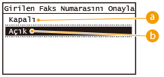 Faks Numarasını Onaylama Ekranını Görüntüleme