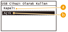 Makinenin arka tarafında bulunan USB bağlantı noktasını devre dışı bırakır.