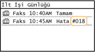 Yazdırma başarılı değilse veya bir faks veya taranan belge gönderemiyor ya da alamıyorsanız veya başka bir hata oluşursa, <Durum Denetleme> ekranında veya bir raporda üç basamaklı sayı (hata kodu) olarak bu hata görüntülenir. Her hata kodu için nedenleri ve çözümleri öğrenmek için aşağıdakileri kontrol edin. Rapordaki bilgiler ve hata raporunu yazdırma bilgileri için bkz.