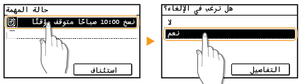 يتم عرض عدد النُسخ والإعدادات والتفاصيل الأخرى. إذا كنت لا تريد سوى التحقق من التفاصيل دون إلغاء عملية النسخ، فاضغط على