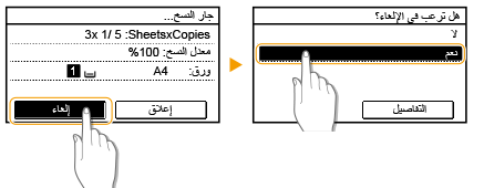 انقر على<إلغاء> على الشاشة المعروضة أثناء النسخ