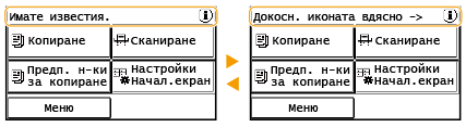 Когато е изведено <Имате известия.> или <Докосн. иконата вдясно ->>