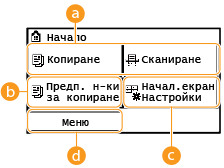 Екранът <Начало> се извежда, когато включите машината или когато натиснете