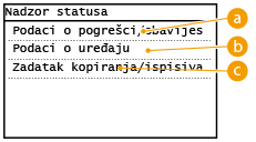 Prikazuje trenutni status odabrane stavke. Zaslon <Status zadatka kopir./ispis> prikazan ispod kao primjer.