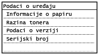 Prikazuje preostalu količinu tonera. Ovisno o okruženju u kojem je uređaj smješten, drugim unutarnjim dijelovima može isteći rok trajanja prije no što se istroši toner.