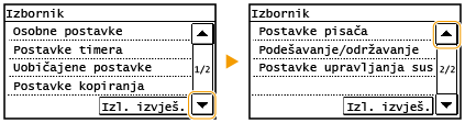 da biste pomaknuli zaslon. Zaslon se mijenja stranicu po stranicu, a broj stranice prikazan je u traci za pomicanje.