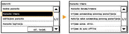 Da biste promijenili zaslon koji se automatski prikazuje ako je uređaj neaktivan određeno razdoblje, pročitajte sljedeći odjeljak: