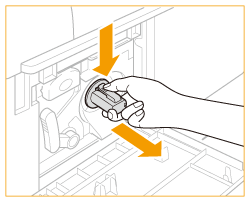 Pripazite da čep prema van vučete ravno. Povučete li ga prema gore ili prema dolje, on bi mogao pući. Pukne li čep dok je još na spremniku tonera, nije ga više moguće izvući u cijelosti te se spremnik ne može koristiti.
