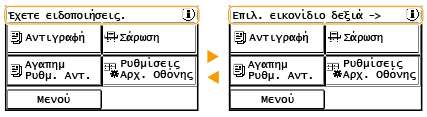 Όταν Εμφανίζεται το Μήνυμα <Έχετε ειδοποιήσεις.> ή <Επιλ. εικονίδιο δεξιά ->>