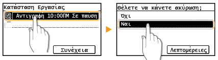 Πατήστε <Άκυρο> στην οθόνη που εμφανίζεται κατά την αντιγραφή