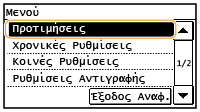 Όλες οι ρυθμίσεις σχετικά με την οθόνη παρατίθενται μαζί με σύντομες περιγραφές. Οι προεπιλεγμένες ρυθμίσεις επισημαίνονται με έναν σταυρό στίξης (