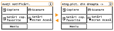 Când se afişează <Aveţi notificări.> sau <Atng.pict. din dreapta ->>