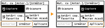 Atingeţi <Anterior> sau <Următor> pentru a muta butonul şi atingeţi <Aplicare>.