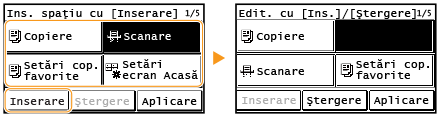 Puteţi să modificaţi ordinea în care se afişează butoanele în ecranul <Pornire> în conformitate cu aplicaţia dvs. sau cu un mod de aranjare preferat.