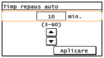 Setaţi intervalul de timp care trebuie să treacă înainte ca aparatul să intre automat în modul repaus