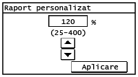 pentru a introduce raportul de copiere şi atingeţi <Aplicare>. Puteţi seta orice raport de copiere de la 25% până la 400% în paşi de 1%.