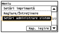 Toate setările despre Setări Administrare Sistem sunt listate cu o scurtă descriere. Setările implicite sunt marcate cu un semn (  ).