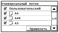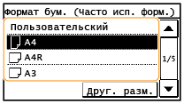 Можно настроить устройство таким образом, чтобы на экране выбора отображались только часто используемые форматы бумаги.