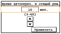 Установите продолжительность времени, по истечении которого устройство автоматически переходит в спящий режим.