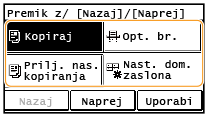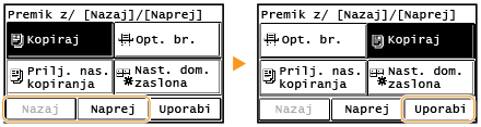 Dotaknite se <Nazaj> ali <Naprej> za premik gumba, nato se dotaknite <Uporabi>.