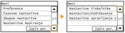![]() Da se vrnete na prejšnji zaslonZa pomik na prejšnji zaslon pritisnite