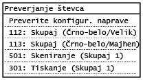 Prešteto število za eno natisnjeno/skenirano stran za posamezno postavko na števcu je naslednje: