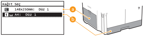Öncelikle kağıt kaynağına yüklenen kağıdın boyutunu ve türünü belirtmeniz gerekir.