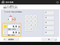2 | <X>辺と<Y>辺の長さを設定する <X>または<Y>を押し、テンキーでそれぞれの辺の長さを入力します。 |