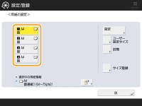 1 | 正しく自動認識されなかった給紙箇所を選択して、<サイズ登録>を押す |
