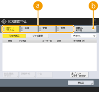 選んだ項目に応じて、現在の状況または履歴が表示されます。この画面から、コピーやファクス送信などを中止することができます。