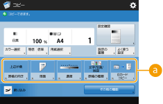<よく使う設定>に登録するコピーはよく使う操作手順を、スキャンはよく指定する宛先および設定を、<よく使う設定>として登録することができます。詳しくは、よく使う機能の組み合わせを登録するを参照してください。 基本画面のデフォルト値を変更する各機能の設定を変更してから、 を押して<デフォルト設定の変更>を押すと、現在の設定状態を基本画面のデフォルトとして登録することができます。個人認証管理でログインしてから(ログインする)この設定を行うと、自分専用のデフォルト値として登録することができます(パーソナライズできる項目一覧)。 |