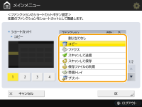 <ホーム>画面に表示されている機能のショートカットを作成することができます。他の機能を操作している途中でもショートカットが表示されていれば、<ホーム>画面に戻ることなく機能を呼び出すことができます。なお、ショートカットを作成するには、管理者としてログインする必要があります。