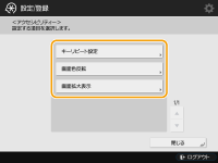 本機の起動時にログイン操作をする設定になっている場合(ログイン画面の表示方法を指定する)は、個人設定で設定できる項目に<起動/復帰後に表示する画面>が表示されます。起動後に表示する画面をユーザーごとに設定することができます。