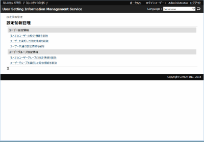 ポータルページで[User Setting Information Management Service]をクリックする リモートUIの画面について