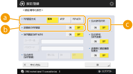 スキャンした原稿を、パソコンを介さずに直接EメールもしくはIファクスで送信するには、メールサーバーや認証、暗号化などの通信設定をする必要があります。通常、送信にはSMTPサーバーを使用し、受信にはSMTPサーバーもしくはPOP3サーバーを使用します。必要な設定内容について詳しくは、プロバイダーやネットワーク管理者にお問い合わせください。