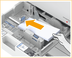 Chargez les enveloppes comme indiqué dans l'illustration suivante, le recto des enveloppes (côté sans la colle) vers le haut.