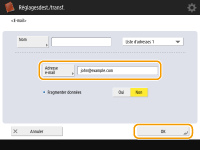 Les informations qu'il est possible d'obtenir via un serveur LDAP comportent uniquement des noms et des numéros de fax/adresses. Enregistrez les autres informations à partir de <Détails/Modification> comme il convient.