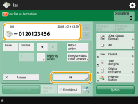 (Démarrer). Quand tous les originaux ont été numérisés, appuyez sur <Début envoi> pour envoyer le fax.![]() |