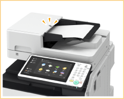 Posizionare gli originali sul vetro di lettura o nell'alimentatore. Per originali come libri e carta sottile/spessa non caricabili nell'alimentatore, posizionare gli originali sul vetro di lettura. Se si desidera acquisire originali fronte-retro o acquisire più fogli di originali, posizionare gli originali nell'alimentatore. Per ulteriori informazioni sui formati caricabili, vedere