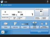 Premere visualizzato nella schermata <Home> e nella schermata Funzioni di base per personalizzare la schermata, ad esempio ridisponendo i pulsanti o creando un tasto di scelta rapida. Personalizzazione del pannello digitale![]() È possibile modificare le impostazioni relative alla visualizzazione della schermata, come ad esempio quale schermata appare subito dopo l'accensione della macchina e la visualizzazione di un messaggio relativo alla quantità residua di carta e toner. <Impostazioni visualizzazione> È possibile impostare la visualizzazione della schermata dopo che è trascorsa una certa quantità di tempo senza operazioni. <Funzione dopo ripristino automatico> |