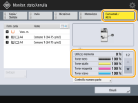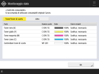 (Monitor. stato), viene visualizzata la schermata Monitoraggio stato, che consente di verificare il livello del toner o altre indicazioni di stato.