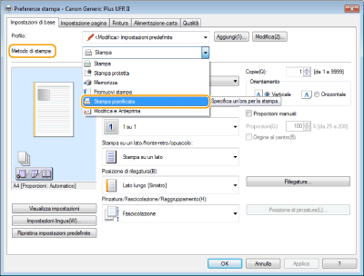 Selezionare [Stampa pianificata] per [Metodo di stampa].