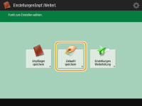 ![]() | Es bietet sich an, ein häufig verwendetes Ziel in einer Zielwahl-Schaltfläche zu registrieren. So können Sie ein Ziel schnell durch Drücken einer Schaltfläche angeben. Sie können in Zielwahl-Schaltflächen nicht nur Faxnummern oder E-Mail-Adressen, sondern auch Dateiserververzeichnisse (IP-Adresse und Pfad) registrieren, um gescannte Daten zu speichern. |