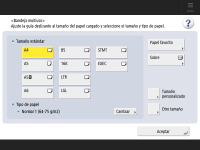 <Aceptar>. Registrar el tamaño y el tipo de papel de uso frecuente para la bandeja multiuso