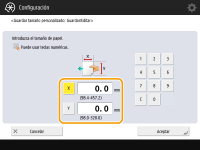 Especifique la longitud del lado <X> y del lado <Y>. Pulse <X> o <Y> para introducir la longitud de cada lado con las teclas numéricas.