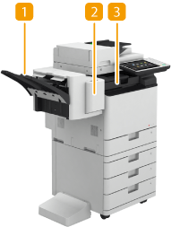 Pour en savoir plus sur les formats papier compatibles avec l'agrafage, consultez la section Caractéristiques matérielles. Pour remplacer la cartouche d'agrafes du module d'agrafage, voir Remplacer les agrafes (Optionnel). Pour connaître la procédure d'élimination d'un bourrage de papier ou d'agrafes, consultez les sections Élimination de bourrages papier et Élimination des bourrages d'agrafes (Optionnel). Dès que le réceptacle de sortie atteint sa limite d'empilement alors qu'il est en train de descendre ou qu'il atteint la position la plus basse, l'impression s'interrompt. Pour faire redémarrer l'impression, retirez tous les tirages du réceptacle. Tri séquentiel et groupementSi vous associez <Décalage> à la fonction de tri séquentiel ou de groupement, chaque groupe d'impressions est décalé des précédents. AgrafeusesLorsque vous utilisez l'agrafage, ne retirez pas la pile de papier du réceptacle de sortie alors que la tâche est en cours d'exécution. Ne retirez la pile de papier qu'une fois la tâche terminée. Si le message <Charger des agrafes dans l'ensemble d'agrafage.> s'affiche, presque toutes les agrafes ont été utilisées. Pour continuer, remplacez la cartouche d'agrafes. |