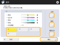 选择一种色彩并使用<-> 或 <+>按钮在其浓度区域调整浓度等级。调整完成之后,请按<确定>。